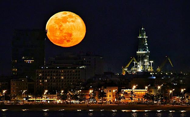 Así se ve la Luna de Lobos desde la capital grancanaria