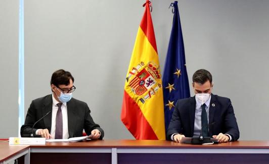 Salvador Illa, en primer plano, y Pedro Sánchez. Efe