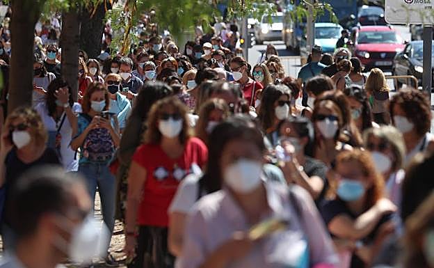 Nuevas colas por las pruebas de la covid a profesores en Madrid