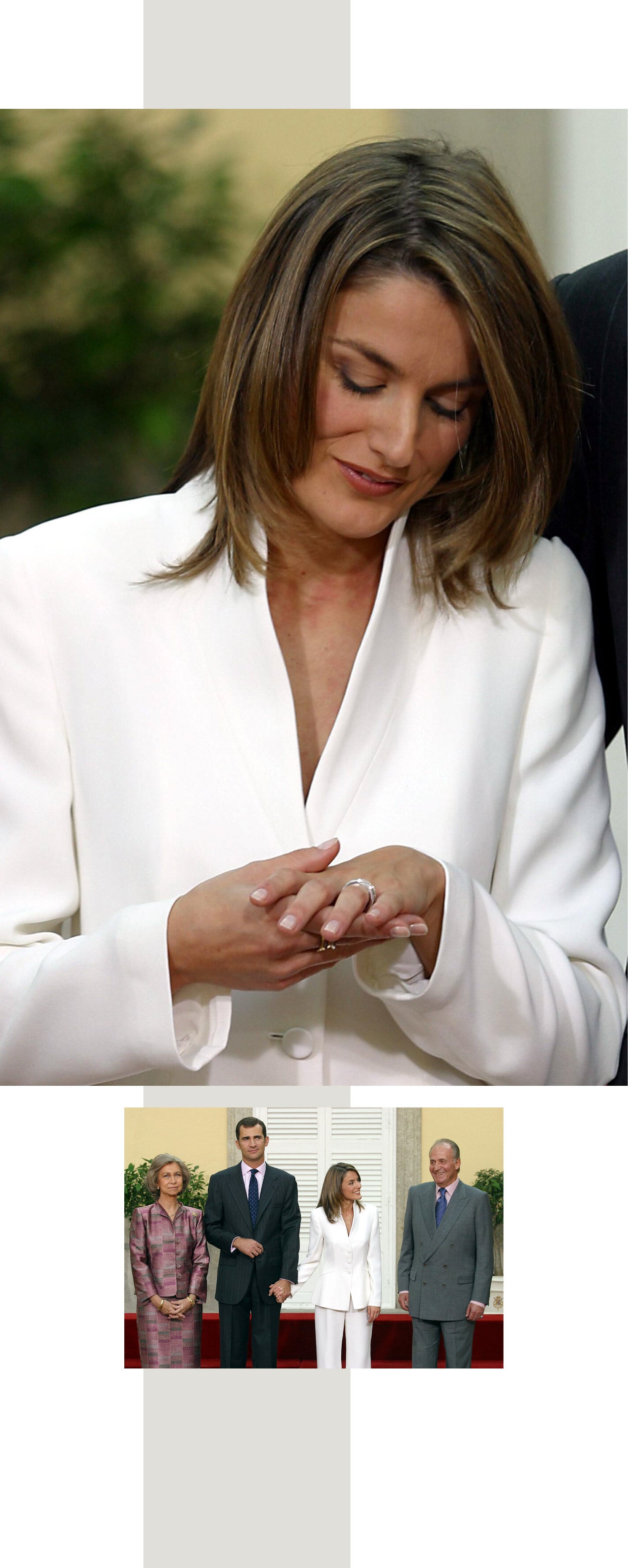 Aquella noche fue su último Telediario. La relación entre el heredero de la Corona y la periodista era un secreto a voces, hasta el punto de que Letizia tuvo que abandonar Torrespaña oculta en el coche de Urdaci para evitar la nube de informadores que buscaban captar una imagen de la joven asturiana de 31 años. La chica de las noticias estaba a punto de convertirse en noticia. En la noticia. Al día siguiente, Zarzuela emitió el comunicado oficial del compromiso de don Felipe con Letizia Ortiz. La pedida de mano tendría lugar cinco días después, en el Palacio de El Pardo. En la breve nota también se avanzaba que la boda se celebraría a principios de verano en la catedral de La Almudena, en Madrid. Nada más.