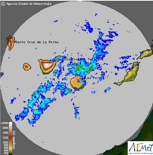 Se esperan más de 15 litros por metro cuadrado en una hora y hasta 60 litros en doce horas en el caso de Tenerife. La mayor probabilidad de precipitaciones será en el norte y este de las islas. Tras descargar en la provincia occidental llega a la de Las Palmas.