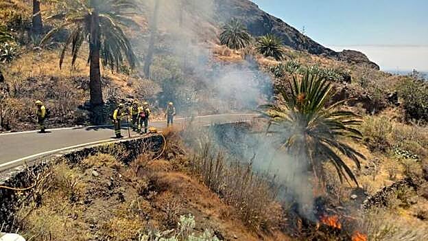 El Cabildo de La Gomera informó del control de un conato de incendio declarado en Taguluche, Valle Gran Rey, que ha afectado a 800 metros cuadrados de matorral y palmeral en este caserío del oeste de la isla.