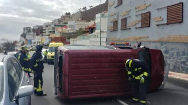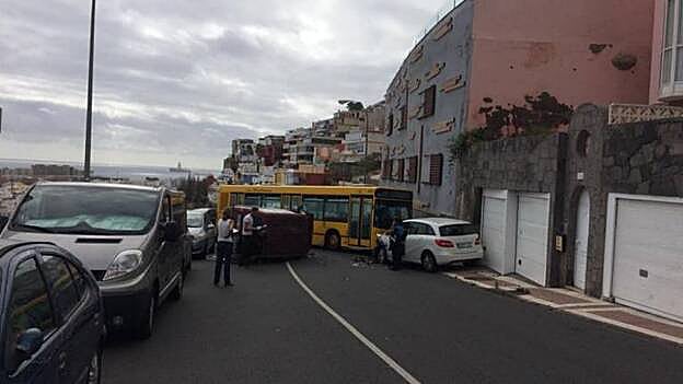 Al invadir el carril contrario impactó con un turismo blanco que bajaba en la otra dirección. Además de agentes de la Policía Local, también se desplazaron al lugar unidades de bomberos de la capital grancanaria. El suceso ha provocado retenciones en la zona.