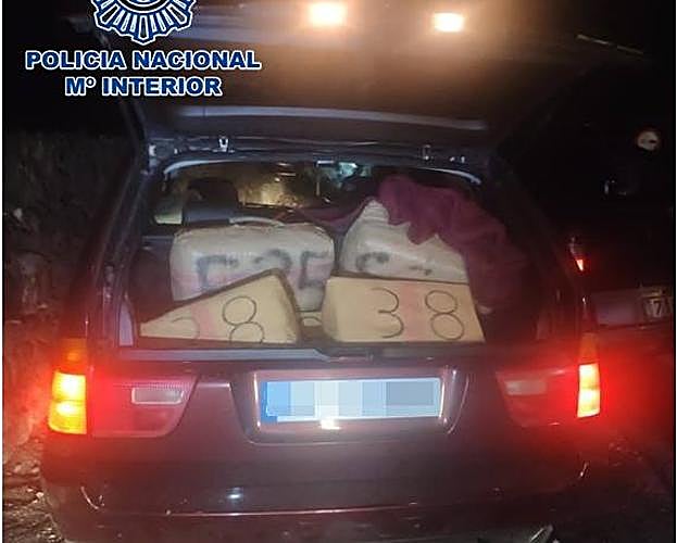 Una vez cargado con la droga, el citado coche circuló a gran velocidad hasta La Geria, donde fue localizado e inmovilizado por agentes de la Policía Nacional, incautándose un total de 542 kilos de hachís.
