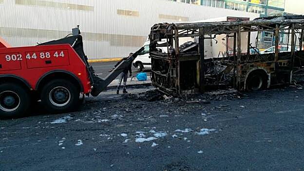 El transporte fue consumido por el fuego en la madrugada de este jueves debido a una avería tras regresar a cocheras y solo hay que lamentar daños materiales.