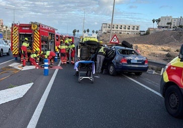 Al lugar acudieron una ambulancia del Servicio Canario de Salud (SUC) y una unidad de la Guardia Civil, que trabajan en la zona para atender a los afectados y restablecer la normalidad en el tráfico.