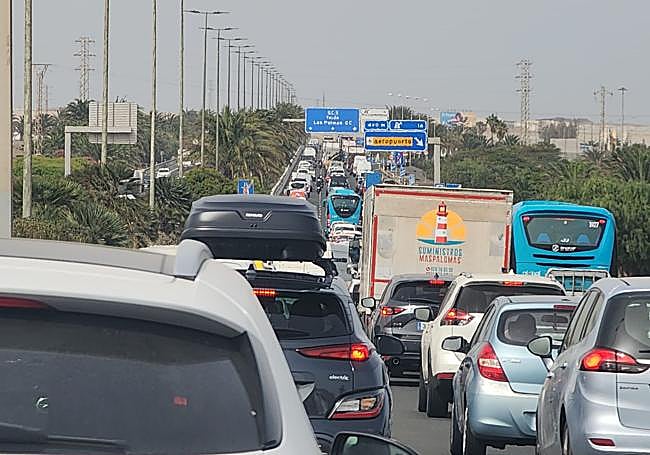 Las imágenes del colapso: colas de coches interminables en la GC-1