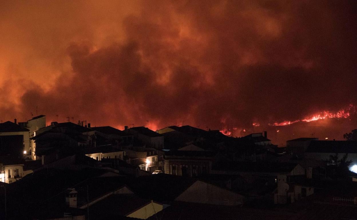El voraz incendio declarado el jueves en Almonaster la Real (Huelva) continúa avanzando sin control a causa del viento cambiante con rachas de 50 kilómetros y ha calcinado ya 9.000 hectáreas de cuatro municipios, según los datos provisionales, y provocado el desalojo de 2.400 personas.