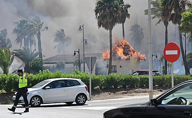 Un incendio forestal en Málaga que afecta a un complejo comercial