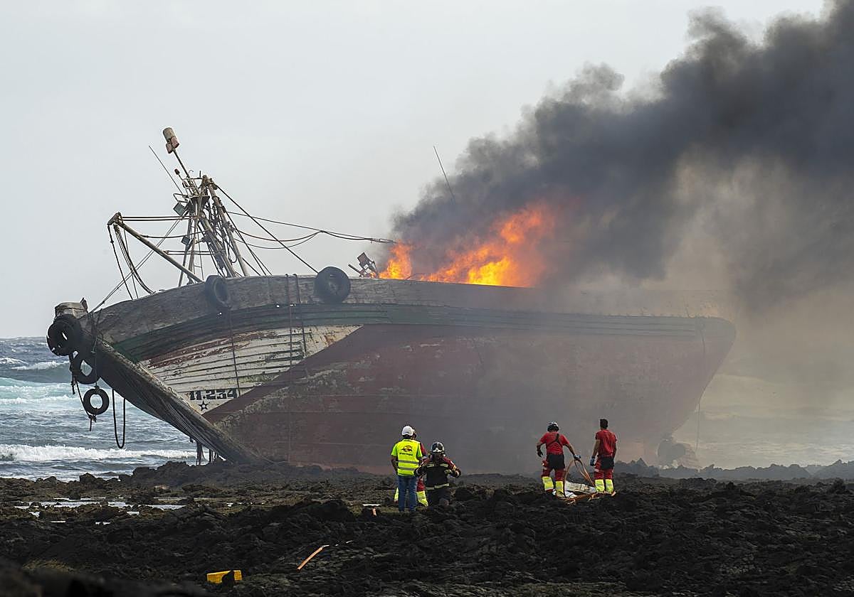 La embarcación, un atunero de unos 15 metros de eslora con bandera marroquí, quedó varada en una baja rocosa y posteriormente se incendió tras el rescate de sus tripulantes. Según relataron los propios migrantes a los bomberos, llevaban cinco días sin comer, un hecho que, junto a su estado de debilidad y las circunstancias del varamiento, reforzó la sospecha de que no se trataba de un accidente de pesca. Según informó Evelia García, teniente de alcalde de Haría, dos de los cinco tripulantes fueron trasladados al Hospital General y se encuentran fuera de peligro.