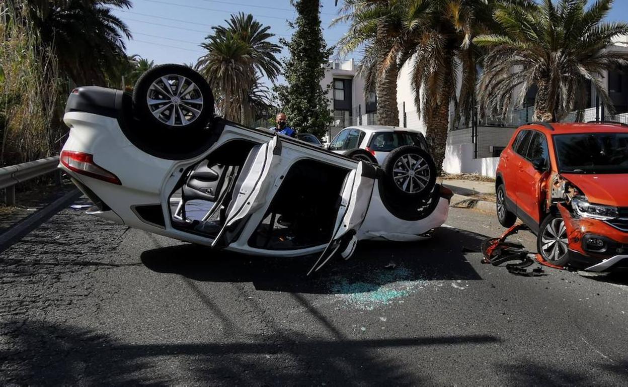 Como consecuencia del impacto el turismo volcó en medio de la carretera. Bomberos de Las Palmas de Gran Canaria tuvieron que excarcelar al menor y a su madre del interior del turismo al no poder salir por sus propios medios.