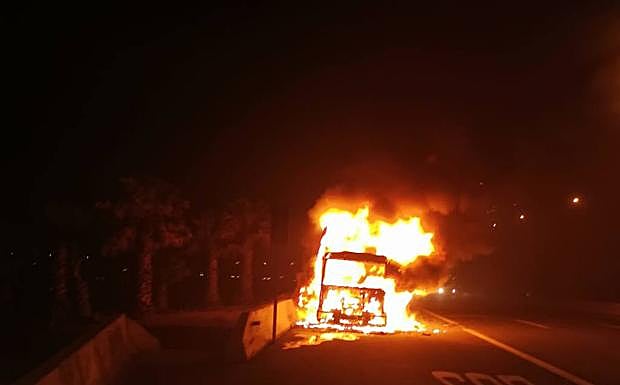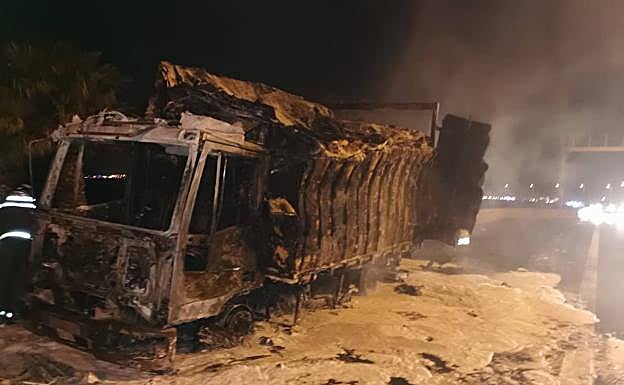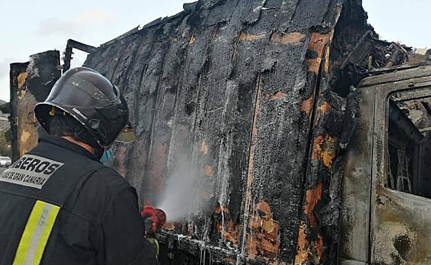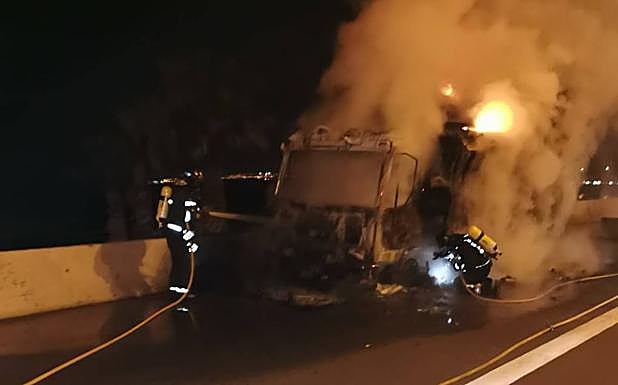 Un incendio calcina un camión frigorífico en la GC-1
