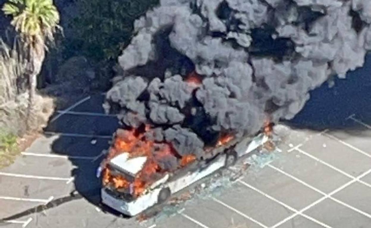 Esta mañana, en los aparcamientos de Palmitos Park, en San Bartolomé de Tirajana, se ha prendido fuego una guagua. De momento se desconocen las causas del percance, que está siendo sofocado por los efectivos del Consorcio de Bomberos del municipio sureño.