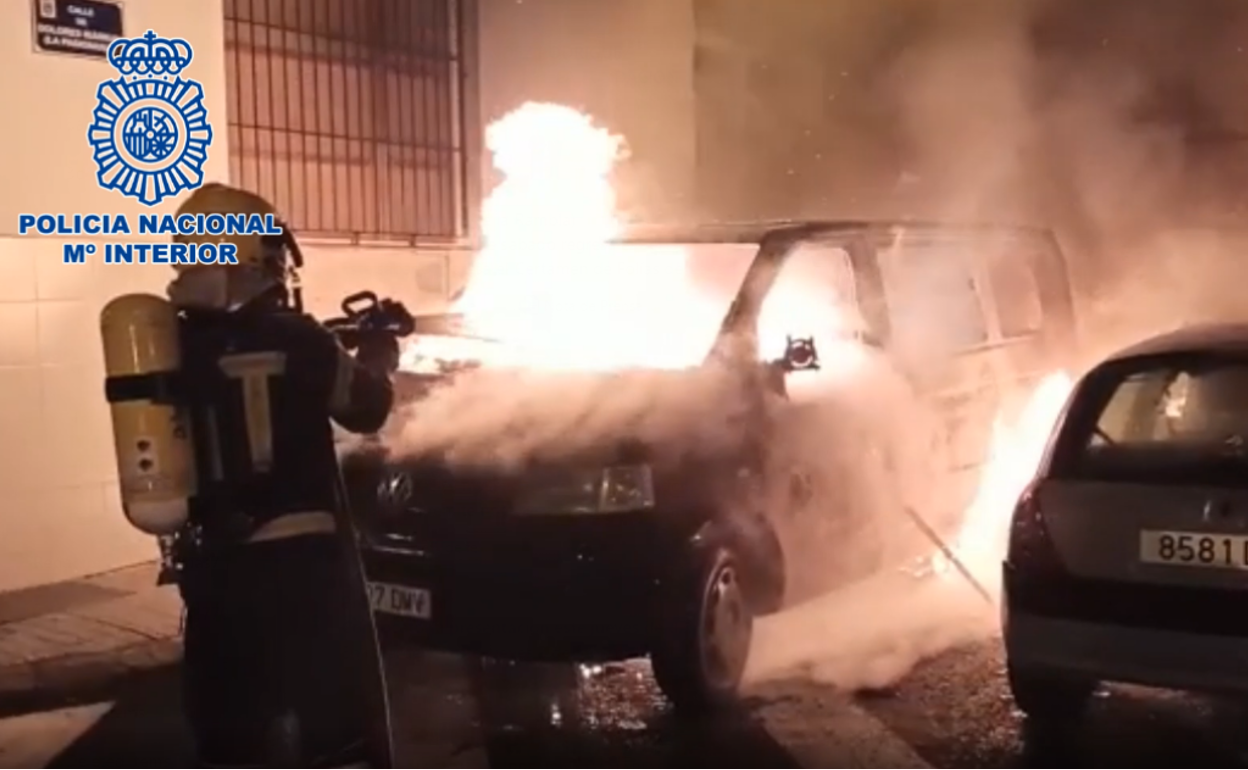 Con las características físicas aportadas por los testigos, los agentes de la Policía Nacional realizaron una búsqueda por los alrededores hasta localizar al presunto autor de los hechos, que fue finalmente detenido como presunto autor de dos delitos de robo con fuerza en interior de vehículo y tres delitos de daños por incendio -dos vehículos y el inmueble afectado-.