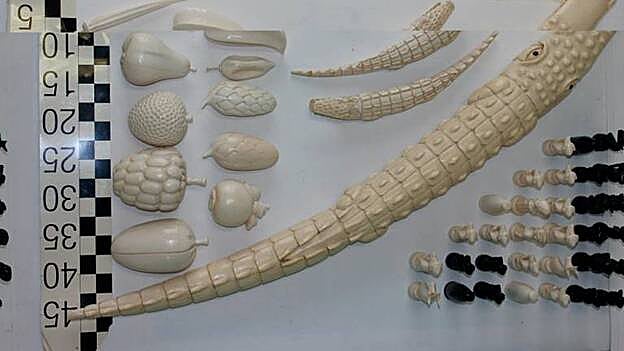 Se trata de 29 tallas de marfil de elefante con distintas formas (3 cocodrilos, hortalizas, piezas de ajedrez y un tablero de ajedrez con incrustaciones de marfil), un tintero conformado por 2 colmillos de hipopótamo y 2 conchas de Nautilus spp., comprobando que éstas habían sido adquiridas por un importe de 400 euros, careciendo su propietario de la preceptiva documentación que acreditase su legal procedencia.