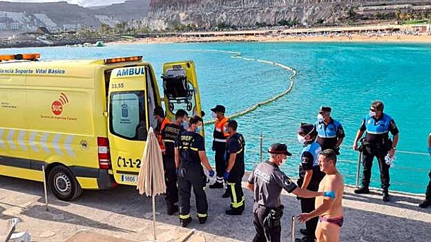 La mujer, de unos 60 años, está en estado grave tras ser recuperada de una parada cardiorrespiratoria en la playa de Mogán.