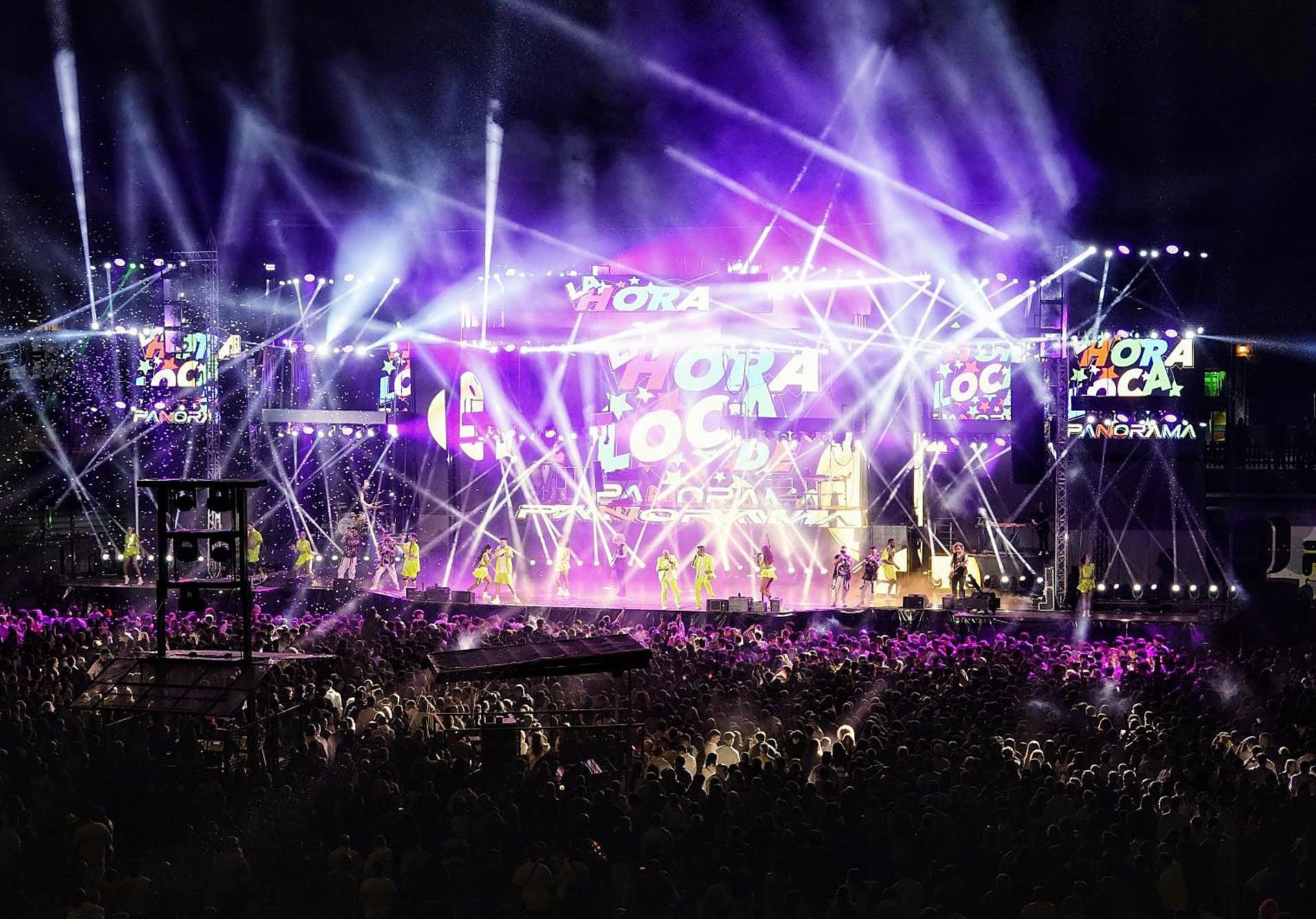 Ahí arriba, los 23 de la Panorama no paran: esprintan de aquí para allá, bailan sin descanso, se materializan en plataformas y pasarelas, cantan hits como quien dispara ráfagas y se cambian de vestuario más rápido que Mortadelo. En el camión-camerino, con las ropas alineadas en orden de uso, el ritmo se acelera. «Esto es una experiencia muy distinta a cualquier otra: por volumen de trabajo, por exigencia... Panorama tiene nombre de orquesta, pero orquesta no es: es un show», comenta la canaria Marleny Doble, una revelación de esta gira, que se multiplica cantando, bailando y tocando saxo, teclados y guitarra. «¡Yo que no sabía ni lo que era una orquesta!», suspira la acróbata Marina García, una jerezana que viene de la gimnasia de competición.