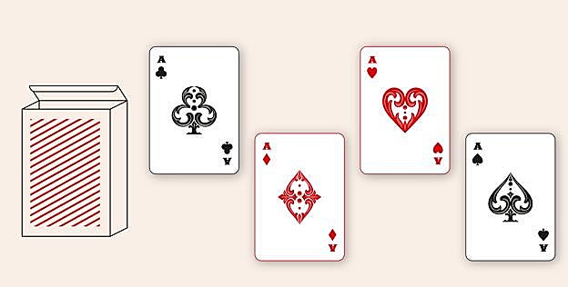 Solo necesita los cuatro ases de una baraja francesa y un estuche